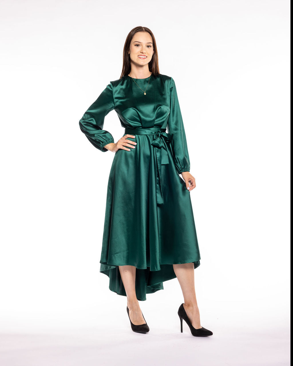 Final sale item. Channel your inner Elphie with this glamorous emerald green formal dress. Perfect for the Holidays, weddings, bar Mitzvahs, and more.