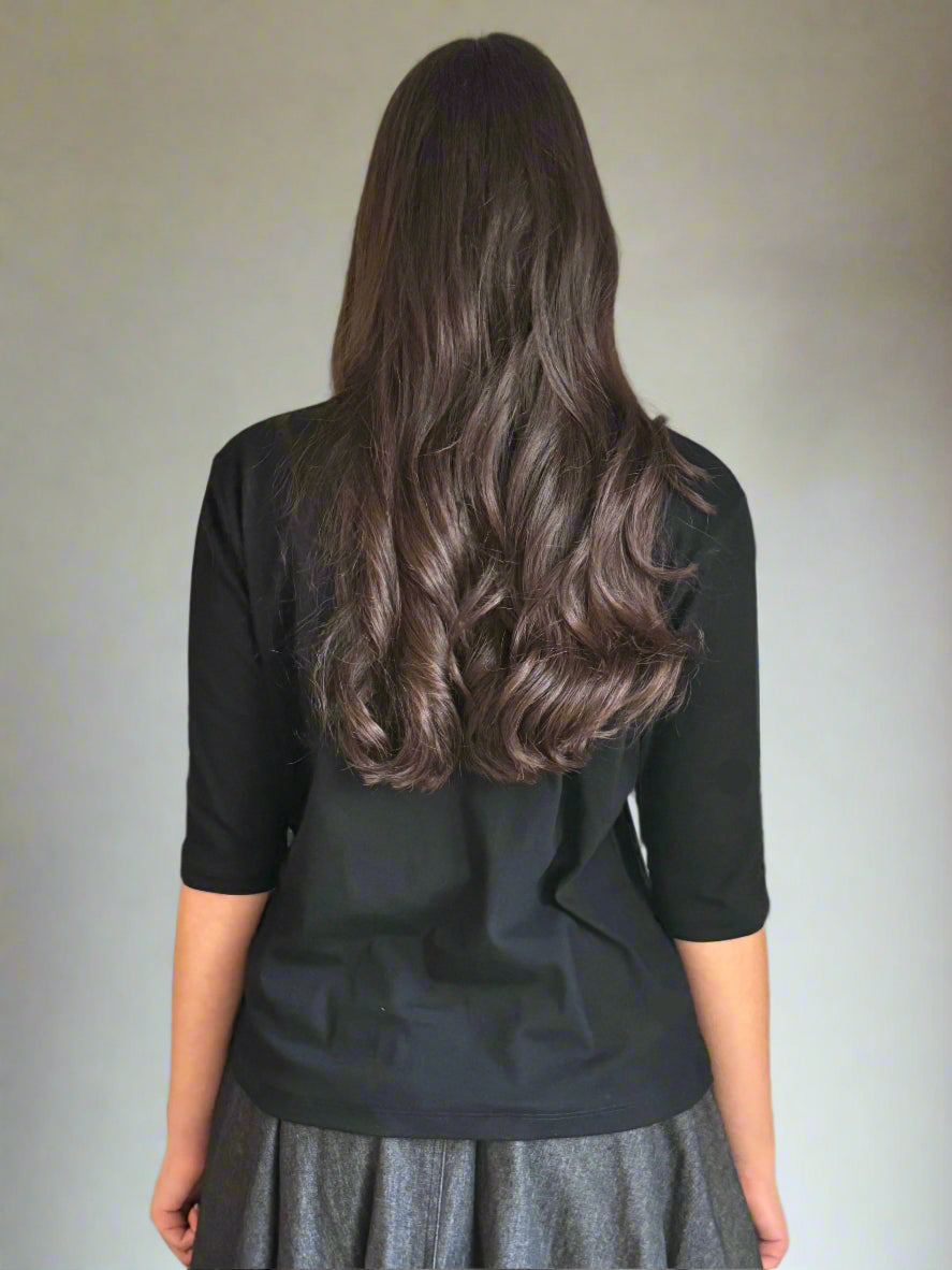This oversized T-shirt is destined to be a go to year-round. This top is created to allow the styling and comfort of a oversized T-shirt but the sleeves become slimmer near the cuff to allow for a seamless modest wear.